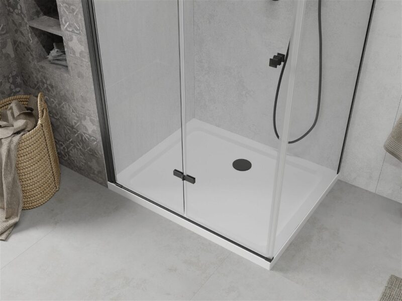Technické údaje kabíny: Rozmer: 120 x 90 cm (dvere 120 cm, stena 90 cm) Výška: 190 cm Montáž: Univerzálna Vstup: skladacie dvere Farba skla: Transparent – Transparent Povrchová úprava: čierna Typ skla: Tvrdené Hrúbka skla: 6 mm Profil: Hliník Obliečka na jednoduché čistenie: Áno Vyrovnanie nerovností steny: Áno Nastavenie šírky: Áno Možné namontovať na bazény alebo dlaždice: Áno Kovová rukoväť Súprava tesnení na odvod vody Hliníkový prah dverí Technické údaje sprchovej vaničky: Rozmer: 120 x 90 x 5 cm biela farba Typ: Obdĺžnikový, Slim Materiál: Sanitárny akryl Vystužené dno Kompletný so sifónom vyčisteným zhora Priemer odtoku: 90 mm Povrchová úprava korku: čierna(GT) Ean: 5907709166998