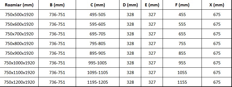 Veľkosť: 75×80 cm (dvere 75 cm, stena 80 cm)