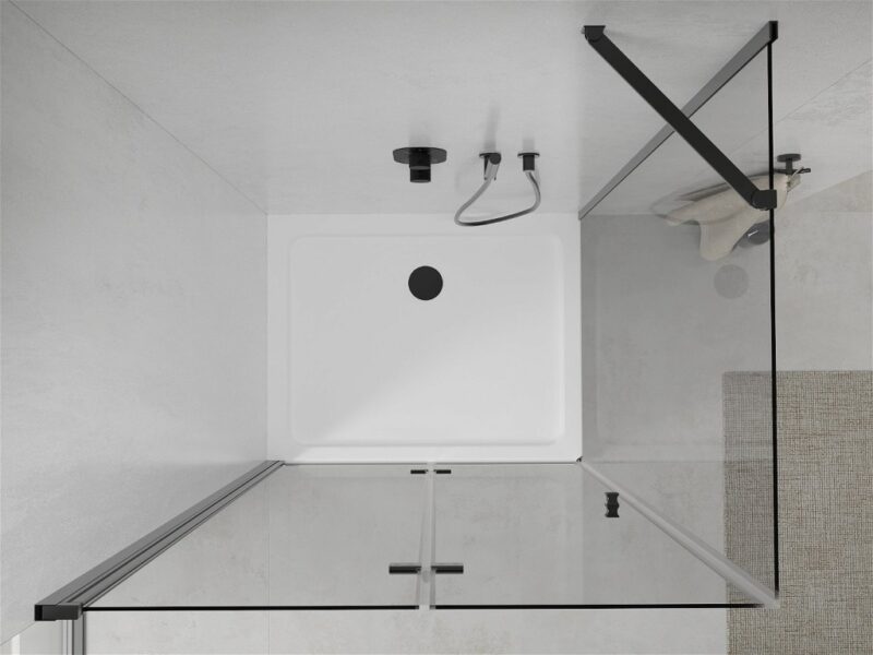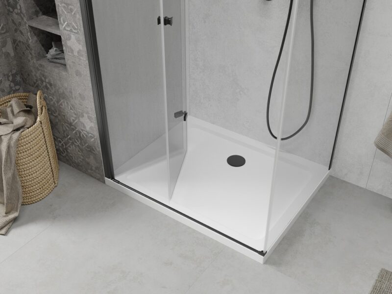 MEXEN/S – Lima sprchovací kút 80×70, transparent, čierna + biela vanička so sifónom 856-080-070-70-00-4010B