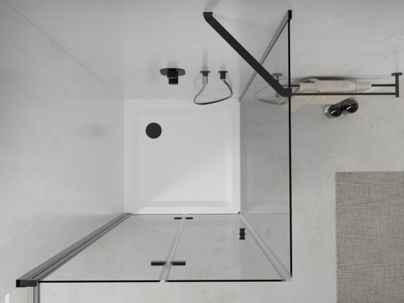 MEXEN/S – Lima sprchovací kút składacie dvere 90 x 90, transparent, čierna + vanička Flat, biela 856-090-090-70-00-4010B
