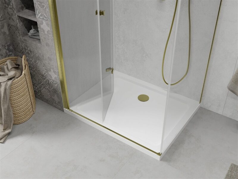 MEXEN/S – Lima sprchovací kút zalamovací 90×100, sklo transparent, zlatá + vanička 856-090-100-50-00-4010