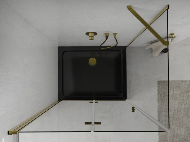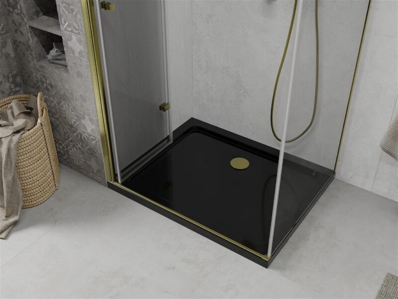 MEXEN/S – Lima sprchovací kút zalamovacie dvere 100 x 80, transparent, zlatý + Flat čierna vanička so sifónom 856-100-080-50-00-4070G