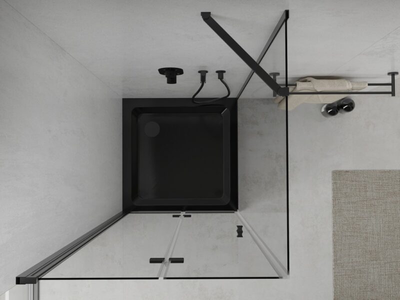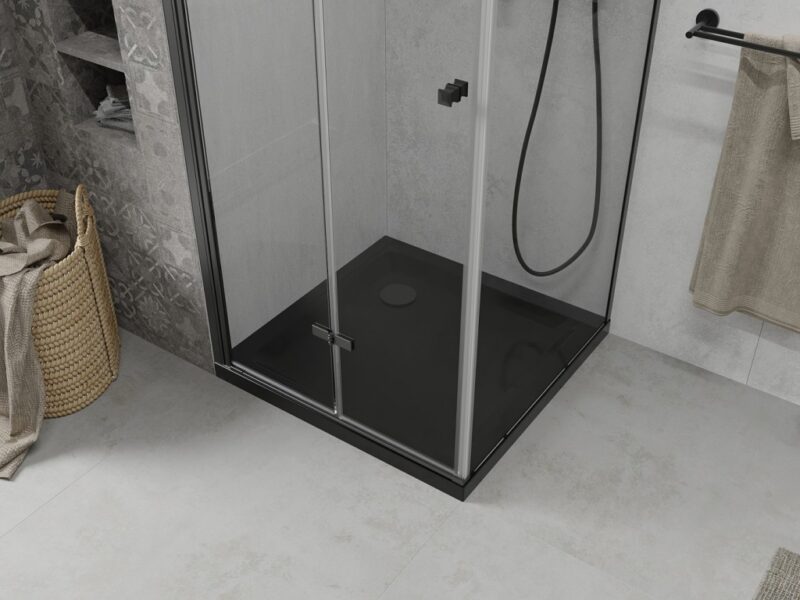 MEXEN/S – Lima sprchovací kút zalamovacie dvere 80 x 80, transparent, čierny + Flat čierna vanička so sifónom 856-080-080-70-00-4070B
