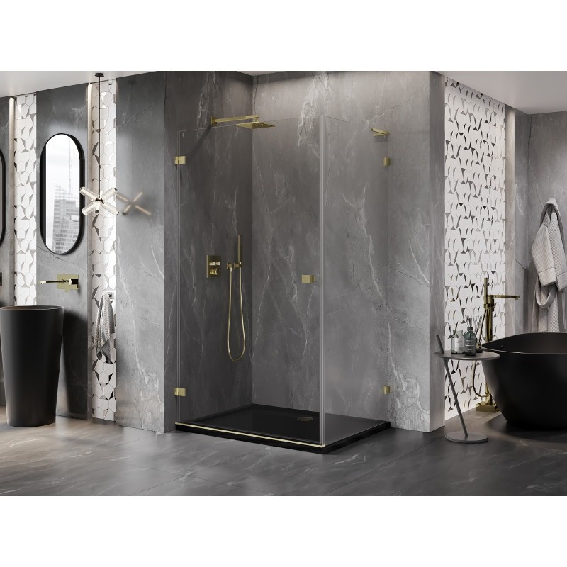 MEXEN/S – Lunar-B L sprchový kút dvere krídlové ľavá 80 x 70, transparent, zlato kartáčovaná 832L-080-070-55-00-L