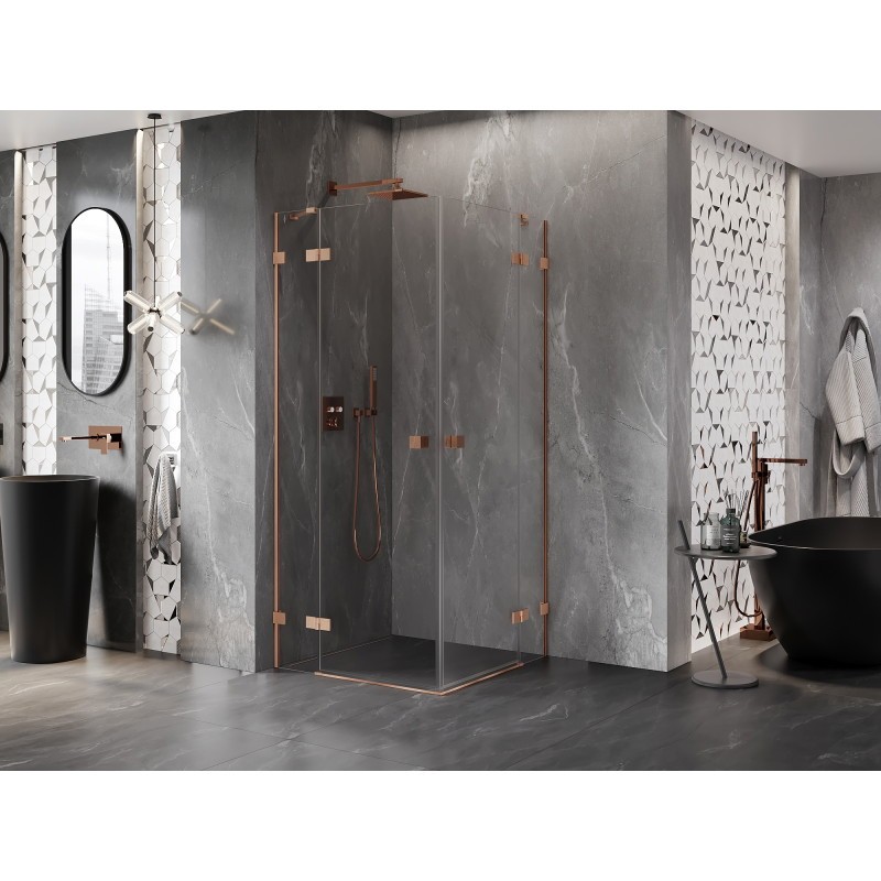 MEXEN/S – Lunar Duo sprchovací kút dvere krídlové 105 x 105, transparent, meď kartáčovaná 834-105L-105P-65-00
