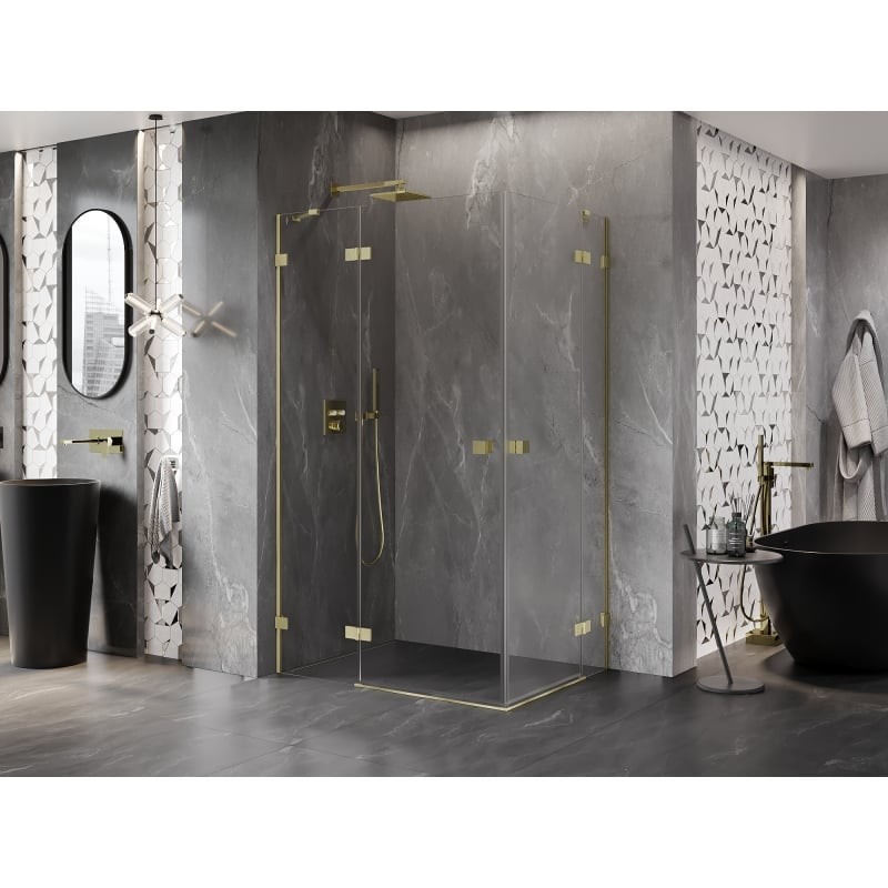 MEXEN/S – Lunar Duo sprchovací kút dvere krídlové 90 x 80, transparent, zlato kartáčovaná 834-090L-080P-55-00