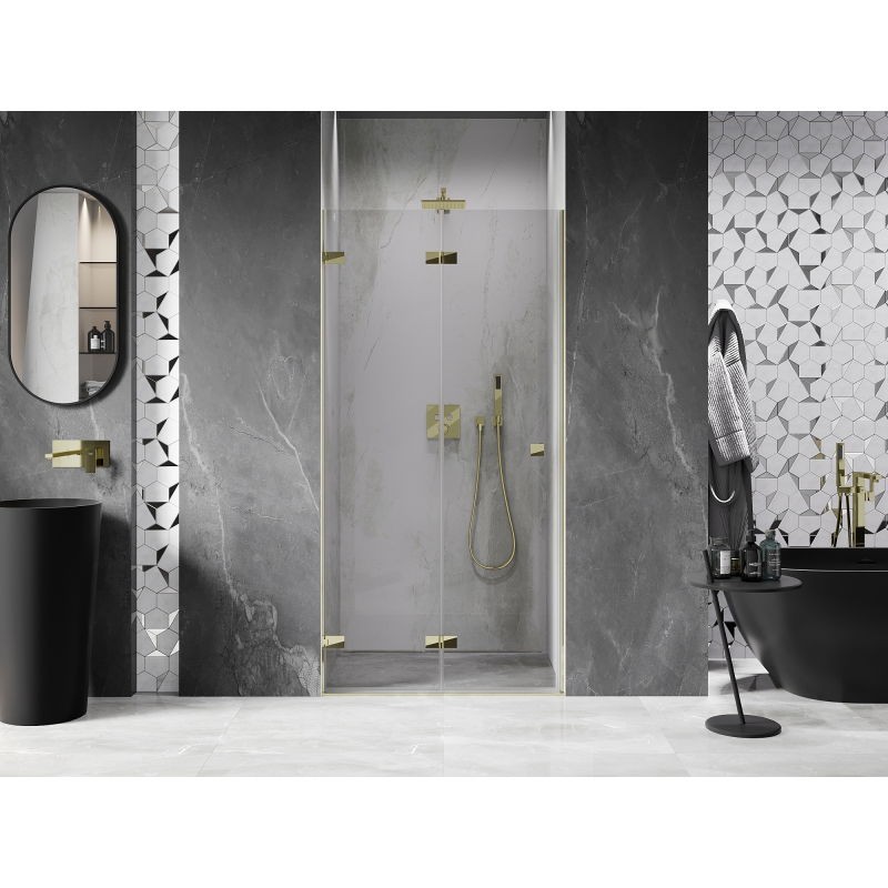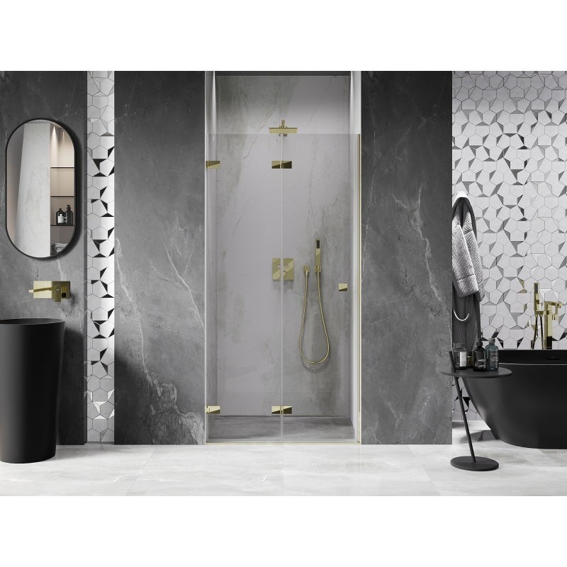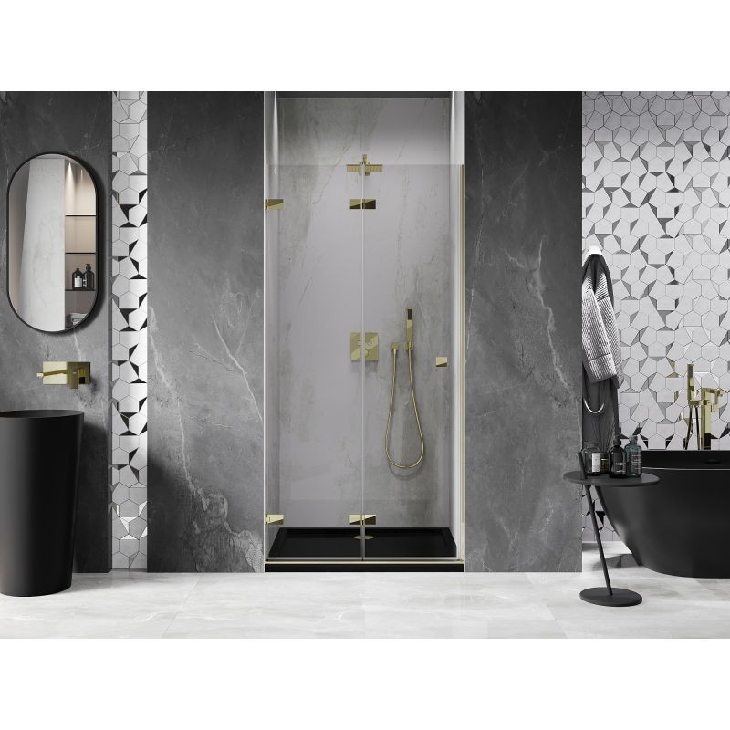 MEXEN/S – Lunar-F skladacie sprchové dvere ľavé 75, transparent, zlatá 836-075-000-50-00-L