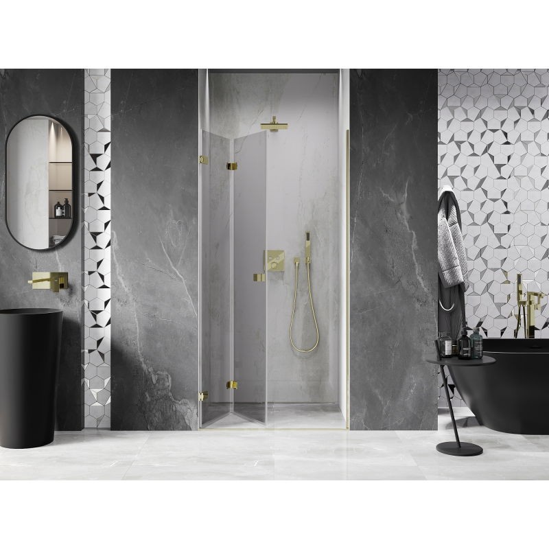 MEXEN/S – Lunar-F skladacie sprchové dvere ľavé 90, transparent, zlatá 836-090-000-50-00-L