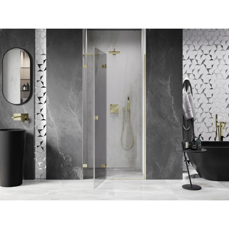 Specifikace produktu: Rozměr: 115×200 cm Strana montáže: Levá Vchod: Výklopný Barva skla: Průhledná Povrchová úprava: Kartáčované zlato Profil: Hliník L-úhlový stabilizátor: nerezová ocel Typ skla: Tvrzené Tloušťka skla: 8 mm Snadno čistitelný povlak Možnost nastavení šířky Dva montážní systémy: – S profilem, který umožňuje vyrovnání nerovností stěn – Bez profilu pro dokonale rovné stěny Lze namontovat na sprchovou vaničku nebo dlaždice Mechanismus zvedání a spouštění dveří Mosazné spony a panty v jedné rovině se skleněnou tabulí Magnetický proužek a elastomerová těsnění pro odvod vody Hliníkový práh těsnění dveří Ean: 5905315420947