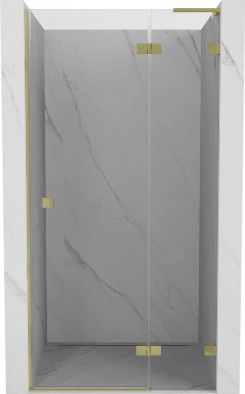 Špecifikácia produktu: Rozmer: 75×200 cm Strana montáže: Pravá Vchod: Výklopný Farba skla: Priehľadná Povrchová úprava: Kartáčované zlato Profil: Hliník L-uhlový stabilizátor: nerezová oceľ Typ skla: Tvrdené Hrúbka skla: 8 mm Ľahko čistiteľný povlak Možnosť nastavenia šírky Dva montážne systémy: – S profilom, ktorý umožňuje vyrovnanie nerovností stien – Bez profilu pre dokonale rovné steny Možno namontovať na sprchovú vaničku alebo dlaždice Mechanizmus zdvíhania a spúšťania dverí Mosadzné spony a pánty v jednej rovine so sklenenou tabuľou Magnetický prúžok a elastomérové tesnenia na odvod vody Hliníkový prah na tesnenie dverí(GT) Ean: 5905315422361