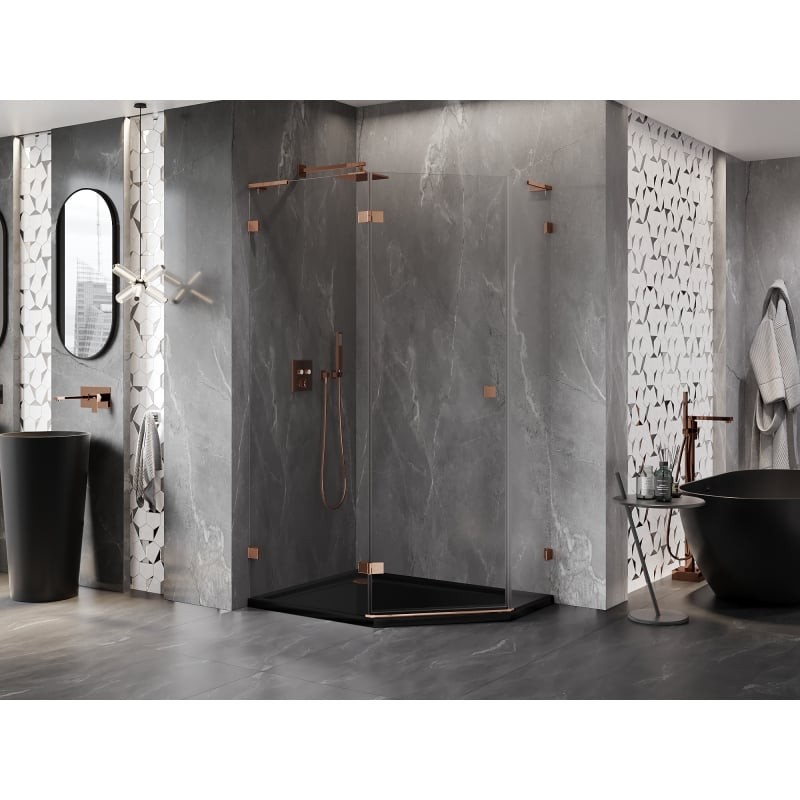 MEXEN/S – Lunar L sprchový kút päťboký krídlový ľavá 100 x 80, transparent, ružové zlato 831L-100L-080P-60-00-L