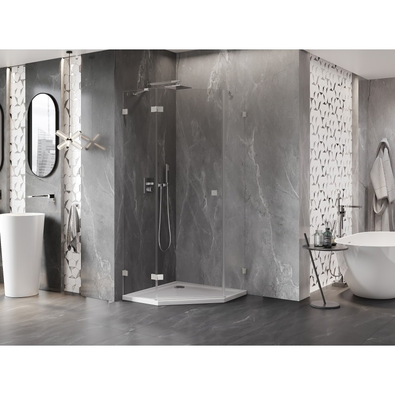 MEXEN/S – Lunar sprchovací kút päťboký krídlový ľavá 80 x 80, transparent, nikel kartáčovaný 831-080L-080P-97-00-L