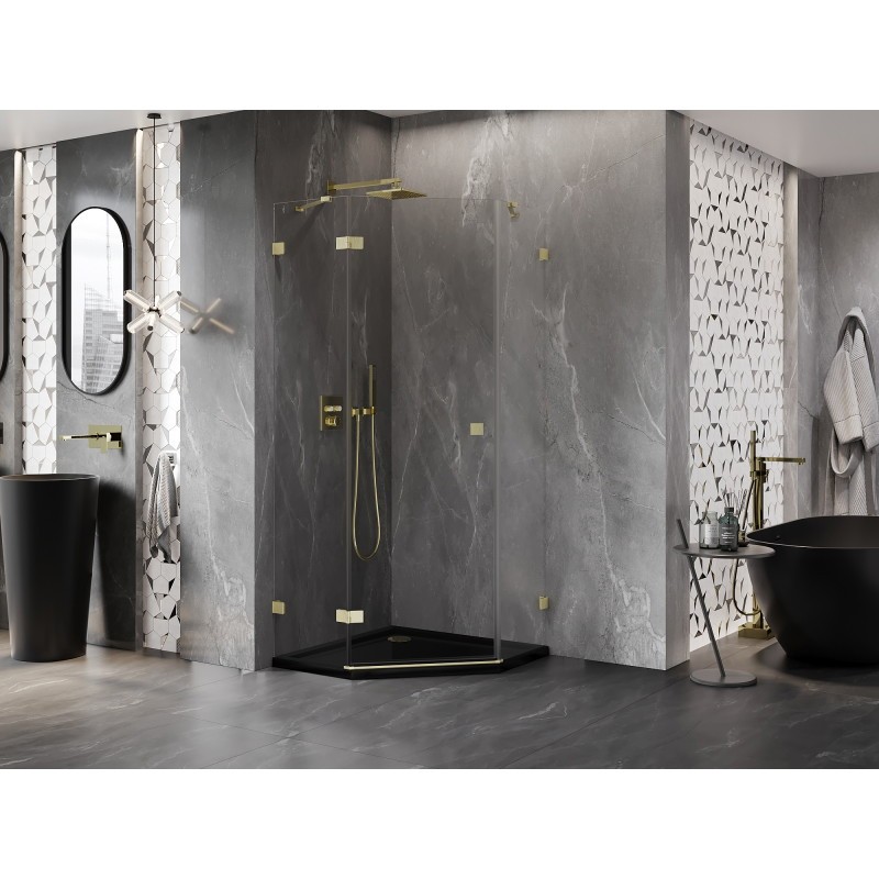 MEXEN/S – Lunar sprchovací kút päťboký krídlový ľavá 80 x 80, transparent, zlato kartáčovaná 831-080L-080P-55-00-L
