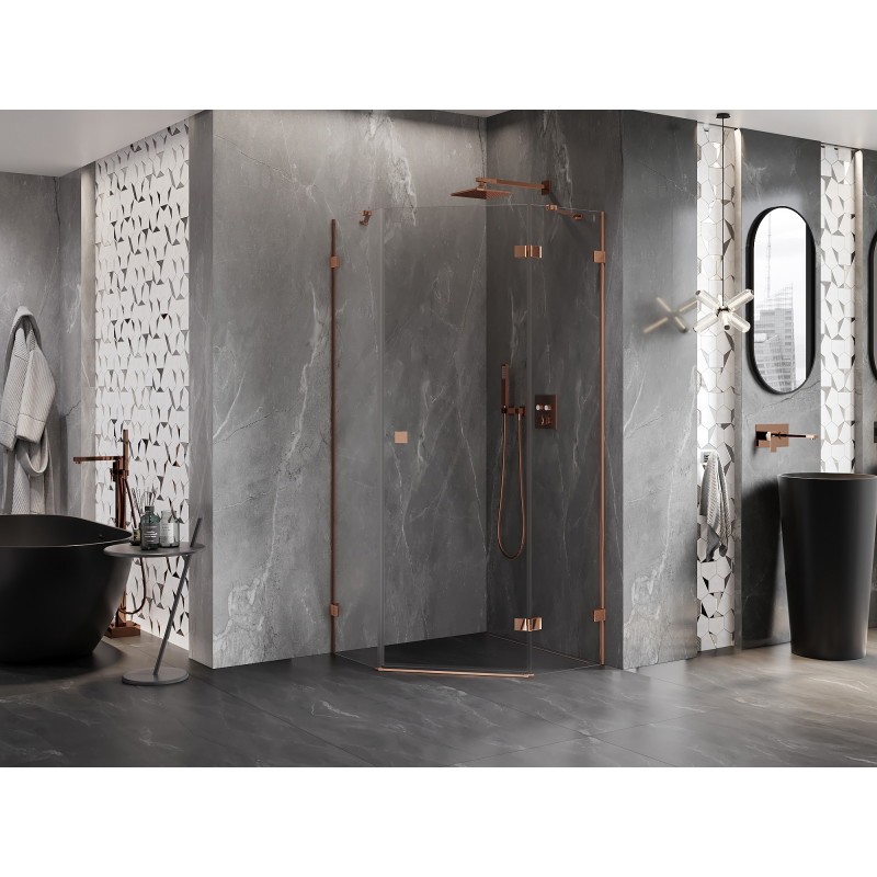 MEXEN/S – Lunar sprchovací kút päťboký krídlový pravá 100 x 100, transparent, ružové zlato 831-100P-100L-60-00-P