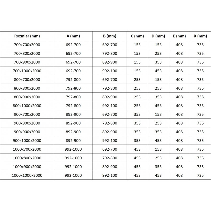 Špecifikácia produktu: Rozmer: 100×80 cm (pravé dvere 100 cm, ľavé dvere 80 cm) Výška: 200 cm Polomer zaoblenia R55 Strana montáže: Pravá Vchod: Krídlové dvere Farba skla: Priehľadná Povrchová úprava: Biela Profil: Hliník Typ skla: Tvrdené Hrúbka skla: 8 mm Ľahko čistiteľný povlak Možnosť nastavenia šírky Dva montážne systémy: – S profilom, ktorý umožňuje vyrovnanie nerovností stien – Bez profilu pre dokonale rovné steny Možno namontovať na sprchovú vaničku alebo dlaždice Mechanizmus zdvíhania a spúšťania dverí Mosadzné spony a pánty v jednej rovine so sklenenou tabuľou Magnetický prúžok a elastomérové tesnenia na odvod vody Hliníkový prah tesnenia dverí(GT) Ean: 5905315411228