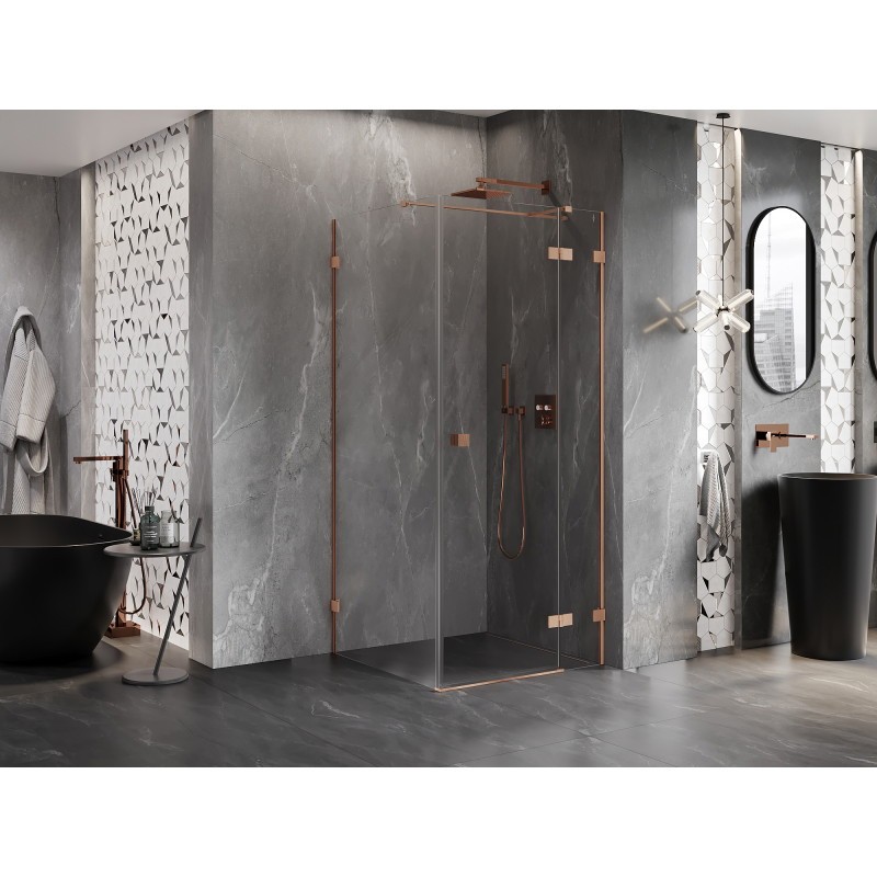 MEXEN/S – Lunar T sprchovací kút dvere krídlové pravá 120 x 120, transparent, meď kartáčovaná 834T-120-120-65-00-P