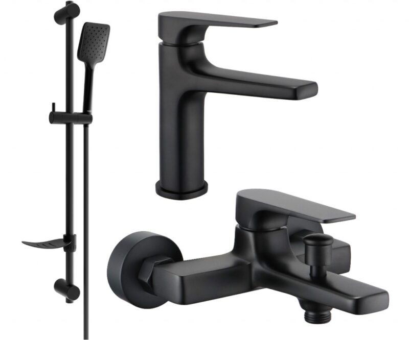 MEXEN/S – Lynx DF62 Set umývadlovej a vaňovej batérie s príslušenstvom, čierna 745903DF62-70
