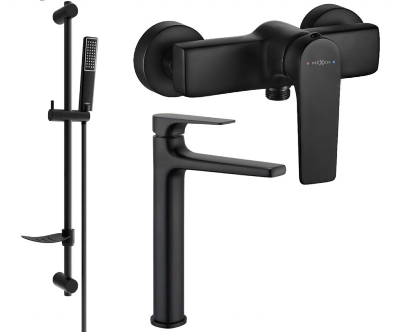 MEXEN/S – Lynx DF72 SET umývadlová a sprchová batéria s príslušenstvom, čierna 745914DF72-70