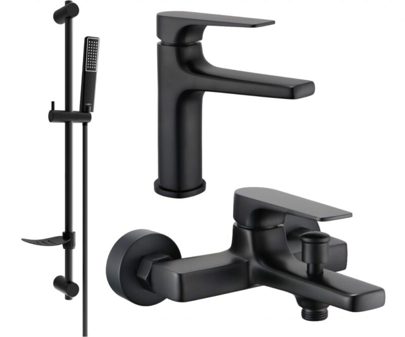 MEXEN/S – Lynx DF72 Set umývadlovej a vaňovej batérie s príslušenstvom, čierna 745903DF72-70