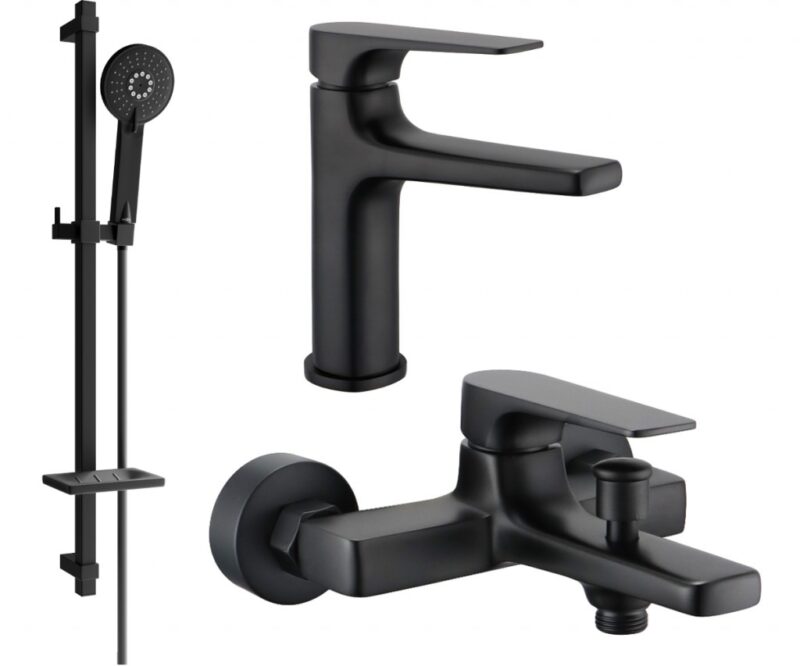 MEXEN/S – Lynx DQ40 Set umývadlovej a vaňovej batérie s príslušenstvom, čierna 745903DQ40-70