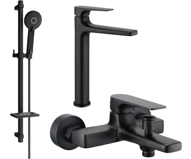 MEXEN/S – Lynx DQ40 Set umývadlovej a vaňovej batérie s príslušenstvom, čierna 745913DQ40-70
