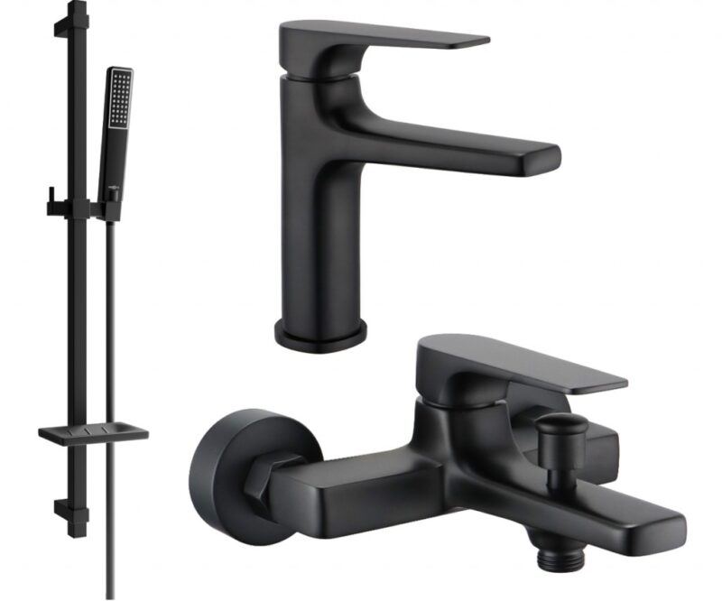 MEXEN/S – Lynx DQ72 Set umývadlovej a vaňovej batérie s príslušenstvom, čierna 745903DQ72-70
