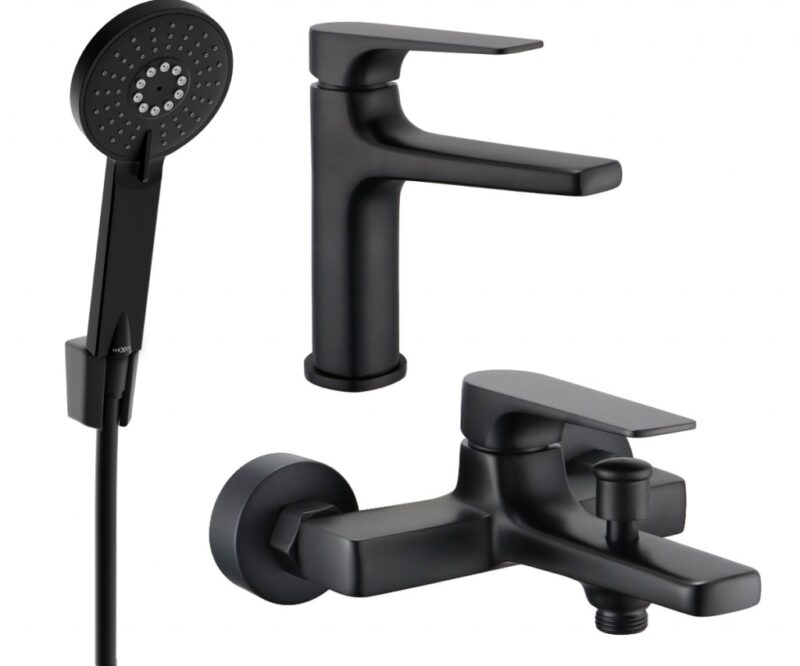 MEXEN/S – Lynx R40 SET umývadlová a vaňová batéria s príslušenstvom, čierna 745903R40-70