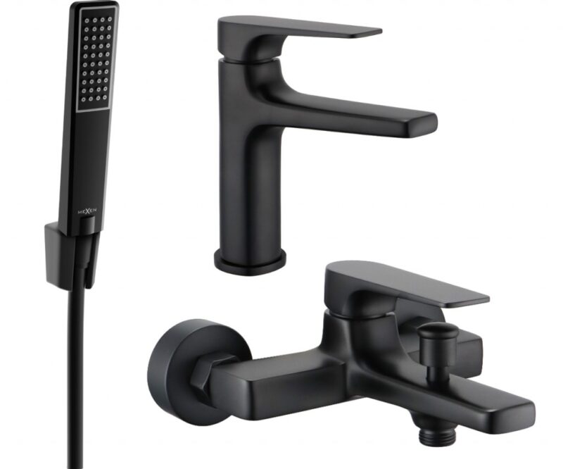 MEXEN/S – Lynx R72 SET umývadlová a vaňová batéria s príslušenstvom, čierna 745903R72-70