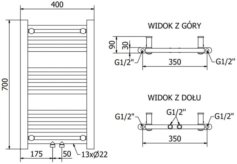 MEXEN/S – Mars radiátor + vykurovacia tyč 700 x 400 mm, 300 W, čierna W110-0700-400-6300-70