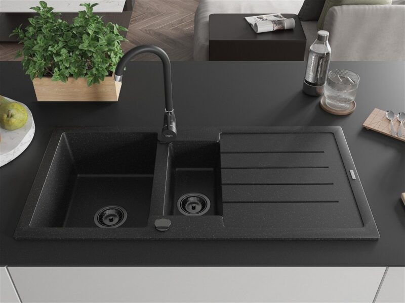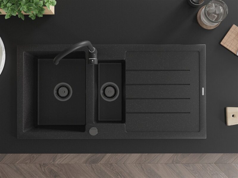 MEXEN/S MEXEN/S – Andres granitový drez s odkvapkávačom 1000 x 500 mm čierna/strieborná metalik čierny sifón 6515101510-73-B