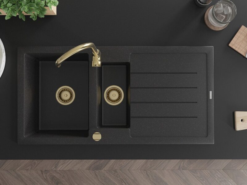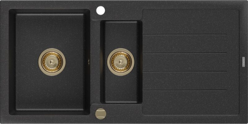 MEXEN/S MEXEN/S – Andres granitový drez s odkvapkávačom 1000 x 500 mm čierna/strieborná metalík, zlatý sifón 6515101510-73-G