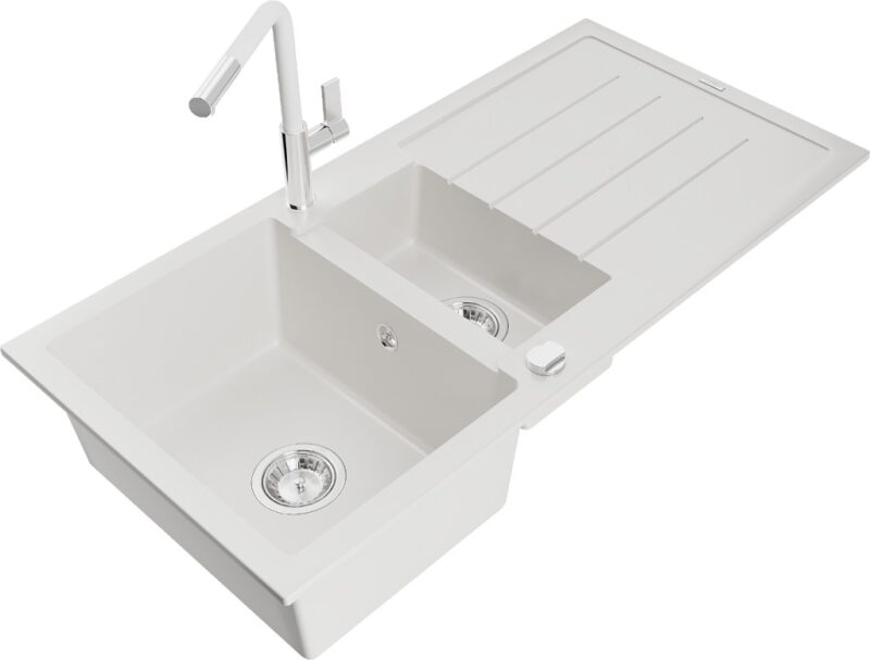 MEXEN/S MEXEN/S – Andres granitový drez s odkvapkávačom vrátane batérie Flora, biela 6515-20-670401-02