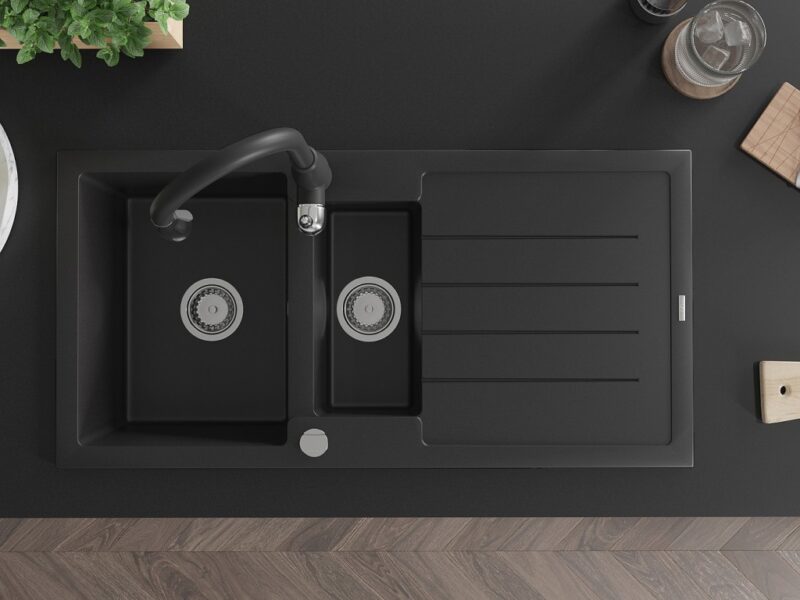 MEXEN/S MEXEN/S – Andres granitový drez s odkvapkávačom vrátane batérie Savita, čierna 6515-77-672601-70