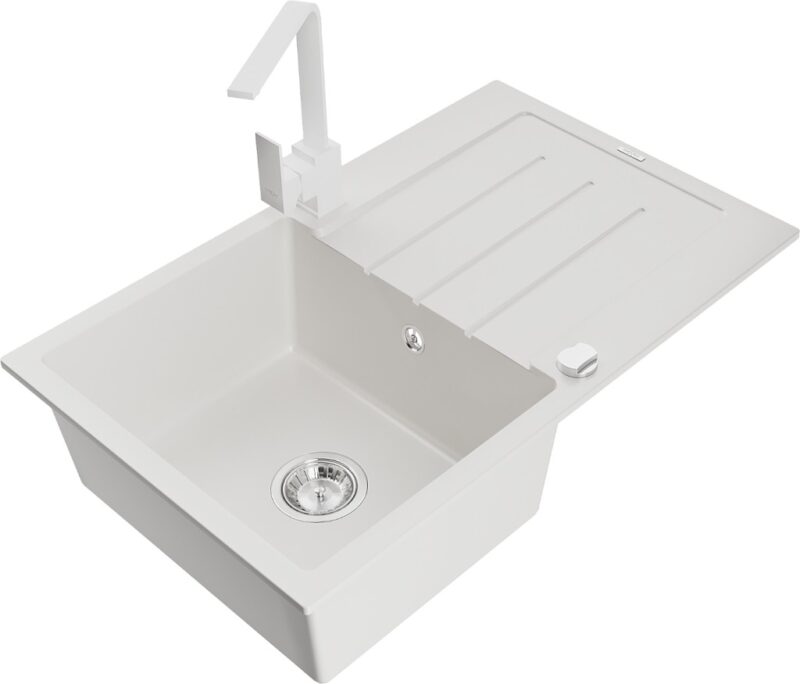 MEXEN/S MEXEN/S – Bruno granitový drez 1-miska s odkvapkávačom vrátane batérie Rita, biela 6513-20-670300-20