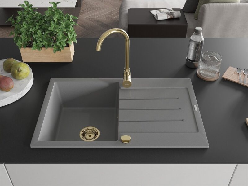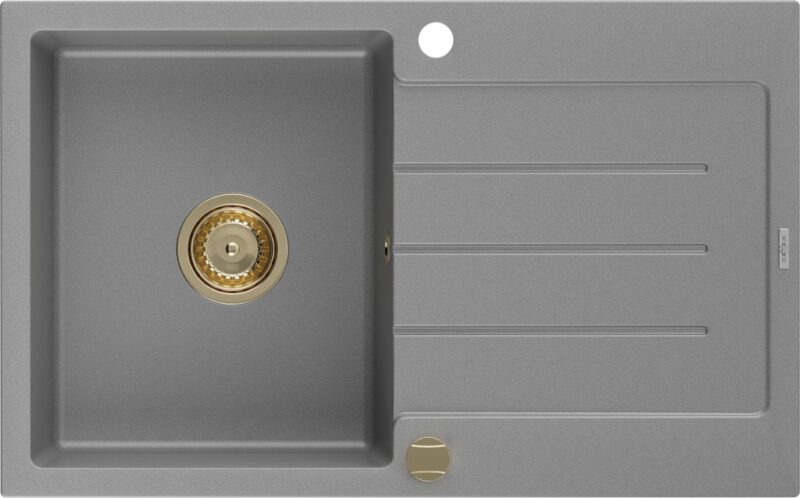 MEXEN/S MEXEN/S – Bruno granitový drez 1 s odkvapkávačom 795×495 mm, sivá, + zlatý sifón 6513791010-71-G
