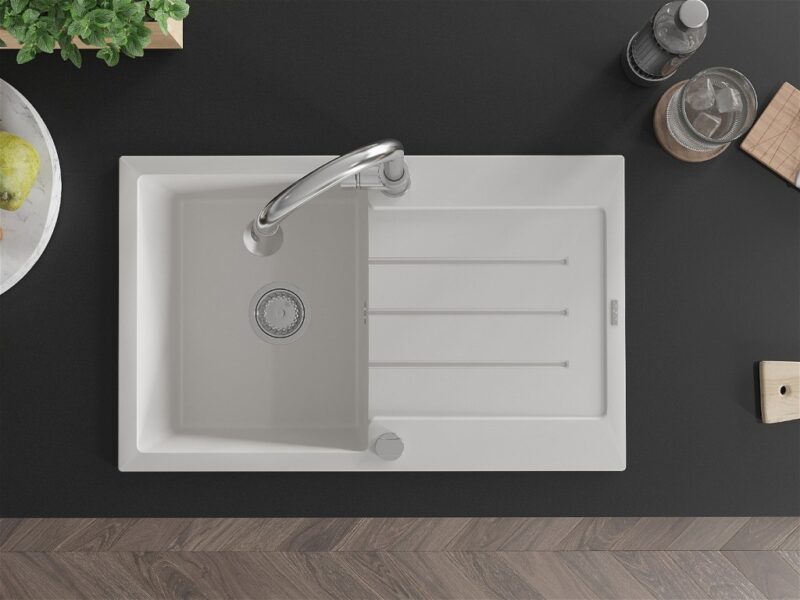 MEXEN/S MEXEN/S – Bruno granitový drez 1 s odkvapkávačom vrátane batérie Elia, biela 6513-20-670101-00