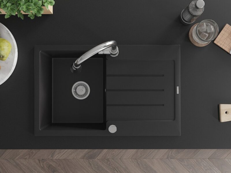 MEXEN/S MEXEN/S – Bruno granitový drez 1 s odkvapkávačom vrátane batérie Elia, čierna 6513-77-670101-00