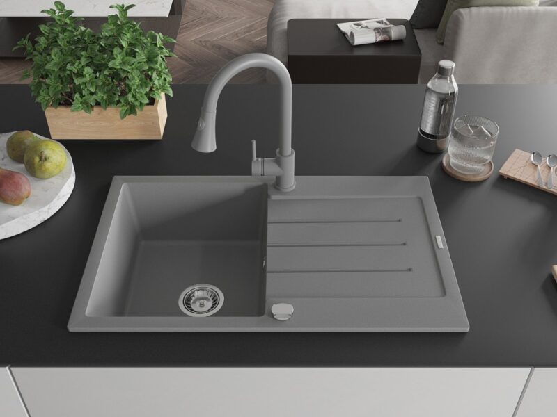 MEXEN/S MEXEN/S – Bruno granitový drez 1 s odkvapkávačom vrátane batérie Elia, šedá 6513-71-670101-71
