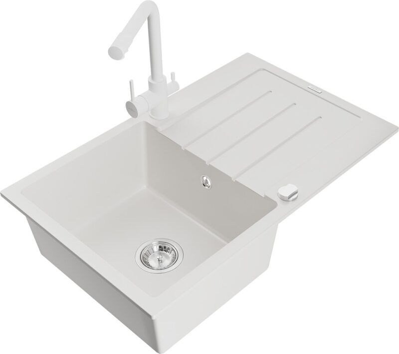 MEXEN/S MEXEN/S – Bruno granitový drez s odkvapkávačom vrátane batérie Duero, biela 6513-20-671600-20
