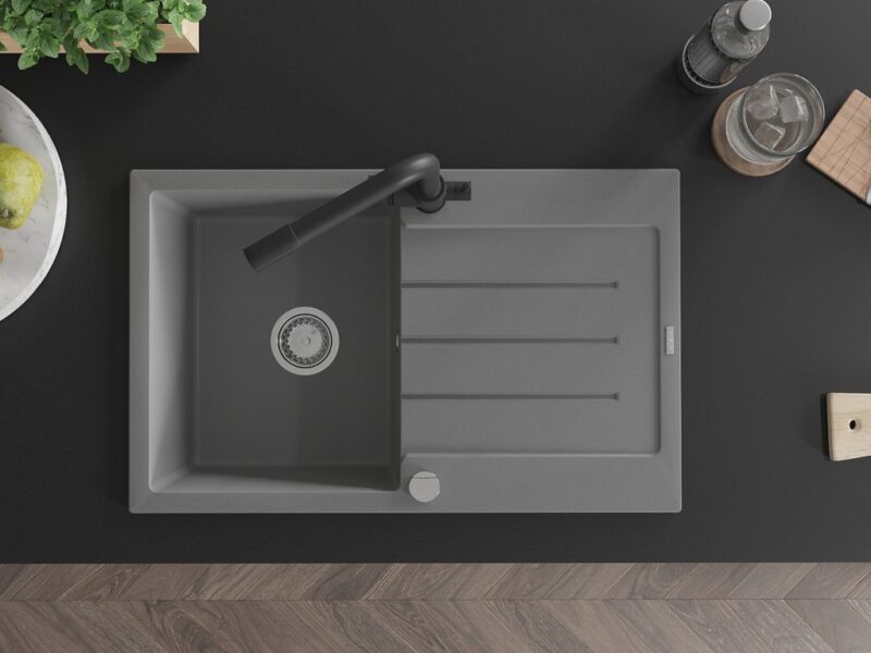 MEXEN/S MEXEN/S – Bruno granitový drez s odkvapkávačom vrátane batérie Duero, šedá 6513-71-671600-70