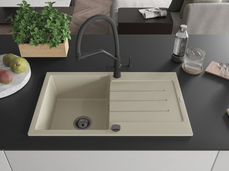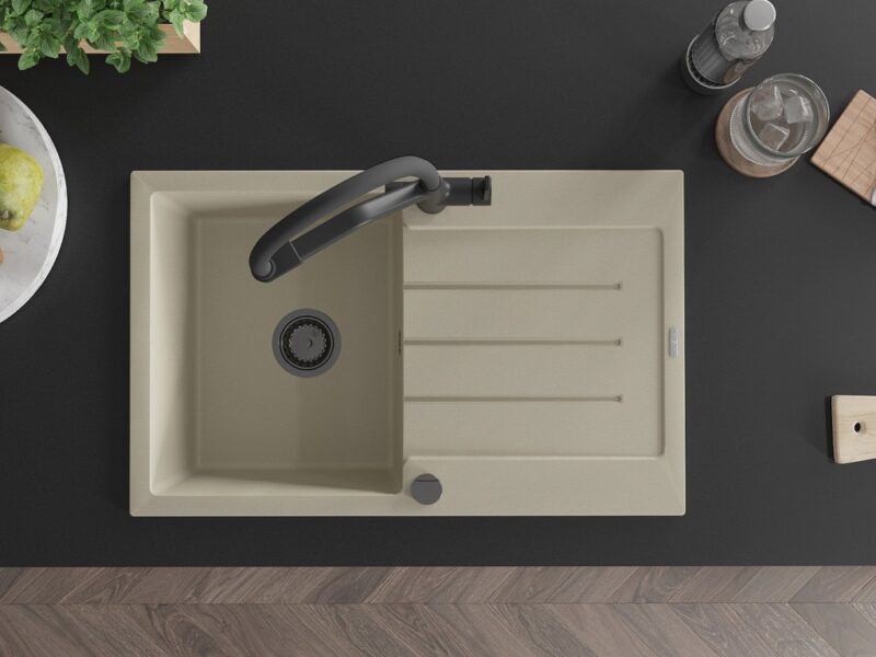 MEXEN/S MEXEN/S – Bruno granitový drez s odkvapkávačom vrátane batérie Duo, béžová 6513-69-671701-70-B