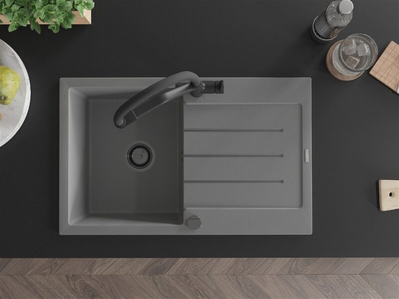 MEXEN/S MEXEN/S – Bruno granitový drez s odkvapkávačom vrátane batérie Duo, šedá 6513-71-671701-70-B