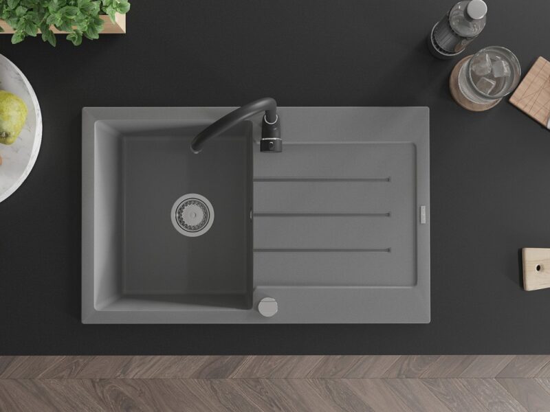 MEXEN/S MEXEN/S – Bruno granitový drez s odkvapkávačom vrátane batérie Telma, šedá 6513-71-670200-70