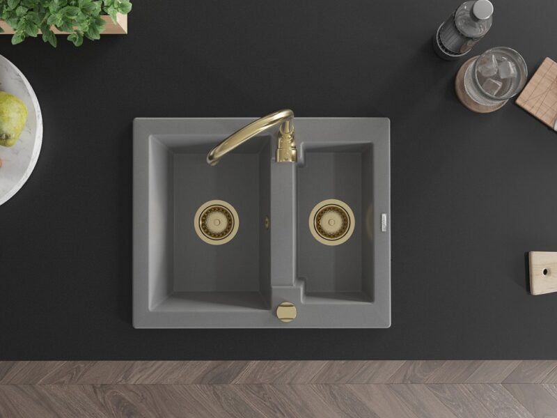 MEXEN/S MEXEN/S – Carlos granitový drez 1.5 582×475 mm, sivá, + zlatý sifón 6518581500-71-G
