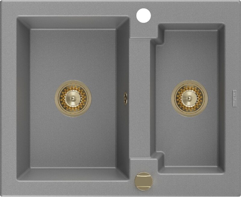 Technické dáta: Rozmer: 582 x 475 x 177 mm Hĺbka komory: 162 mm (väčšia), 102 mm (menšia) Rozmery komory: 395×272 mm (väčšie), 375×182 mm (menšie) Priemer odtoku: ø90 mm Typ: 1,5-komorový Typ: Zapustené do pracovnej dosky Materiál: žula Šedá farba Povrchová úprava sifónu: zlatá Prepadový otvor: Áno Otvor pre batériu: Áno Vrátane automatického sifónu Vysoká odolnosť proti poškriabaniu a zmene farby Odolnosť proti tepelným šokom Ľahko čistiteľný povrch(GT) Ean: 5905315012487