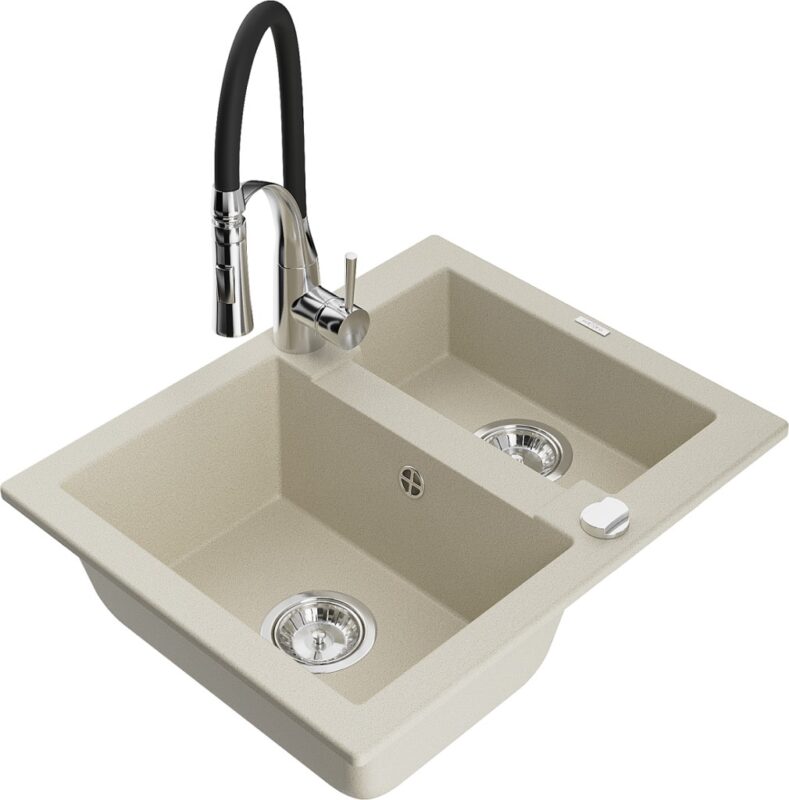 MEXEN/S MEXEN/S – Carlos granitový drez 1.5 vrátane batérie Aster, béžová 6518-69-73450-07