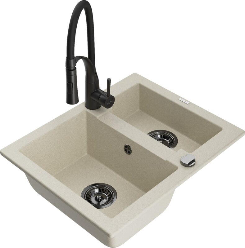 MEXEN/S MEXEN/S – Carlos granitový drez 1.5 vrátane batérie Aster, béžová 6518-69-73450-70-B
