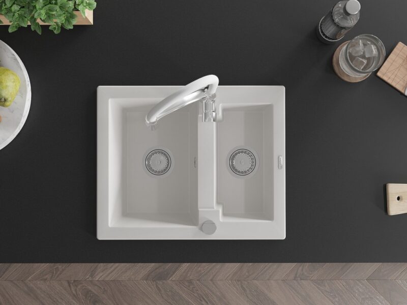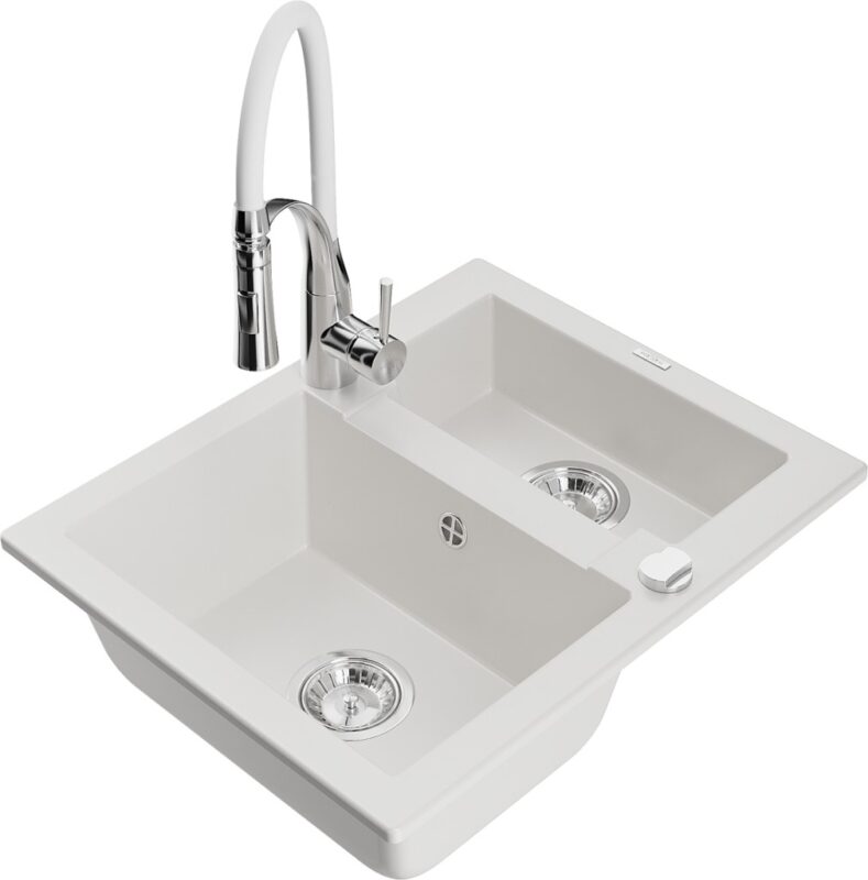 MEXEN/S MEXEN/S – Carlos granitový drez 1.5 vrátane batérie Aster, biela 6518-20-73450-02