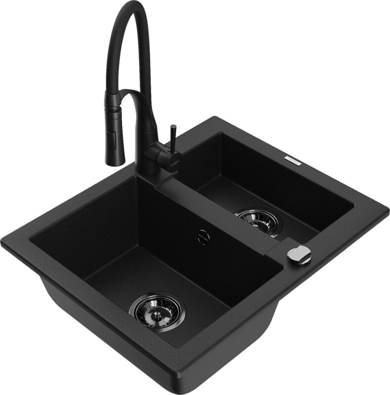 MEXEN/S MEXEN/S – Carlos granitový drez 1.5 vrátane batérie Aster, čierna 6518-77-73450-70-B