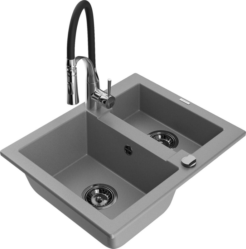 MEXEN/S MEXEN/S – Carlos granitový drez 1.5 vrátane batérie Aster, šedá 6518-71-73450-07-B